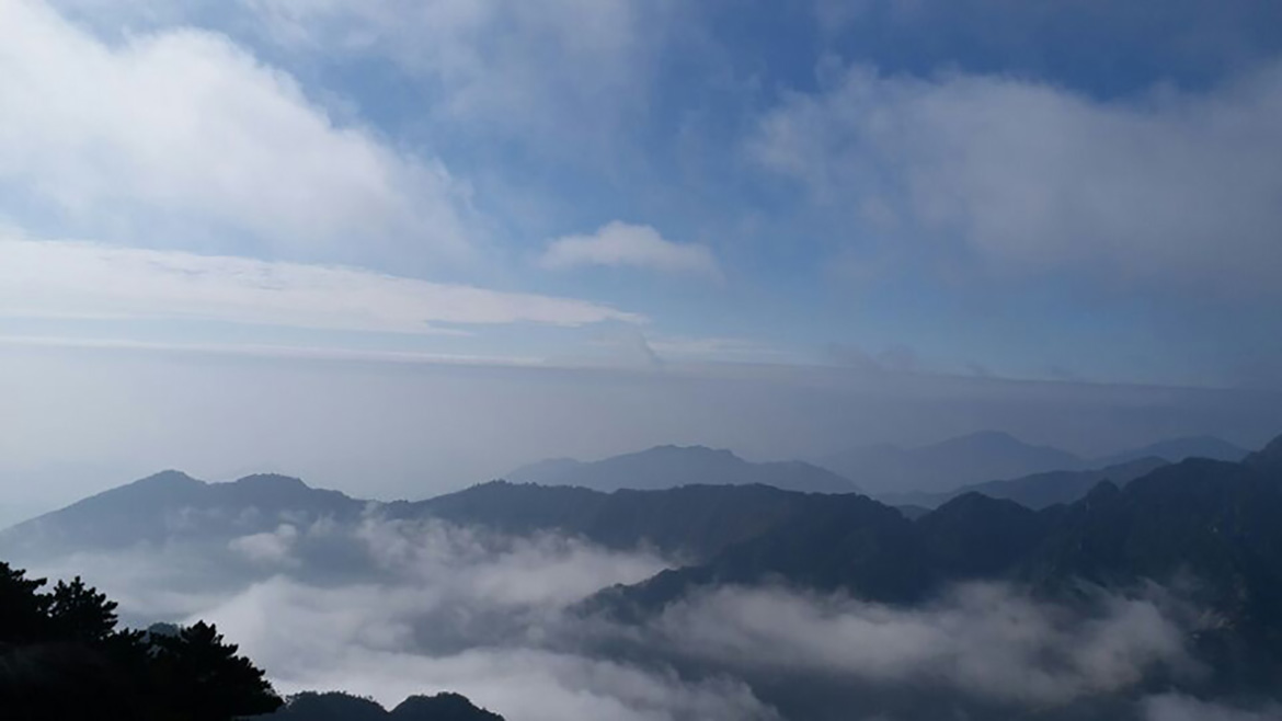 經過漫長的排隊等候我們終于坐上了上山的纜車。隨著纜車的慢慢高升,纜車外霧氣越來越深,穿過云層后看到黃山的真面目,黃山上特有的松樹正向我們伸出手來歡迎我們呢! 真是好美?。?/p>