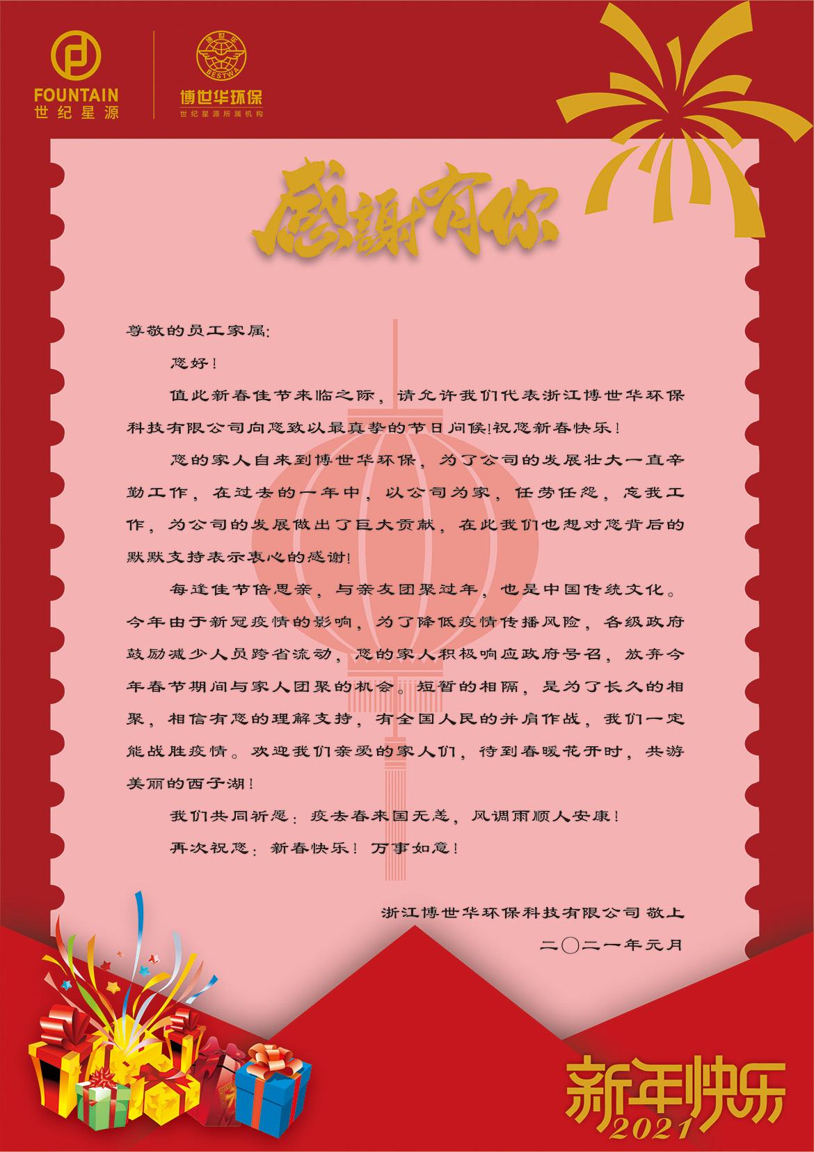 送“祝?!保翰┦廊A環(huán)保通過慰問信、微信拜年等方式,向在杭、在項目過年的員工及家屬致以親切慰問,提供更為細(xì)致周到的人文關(guān)懷。