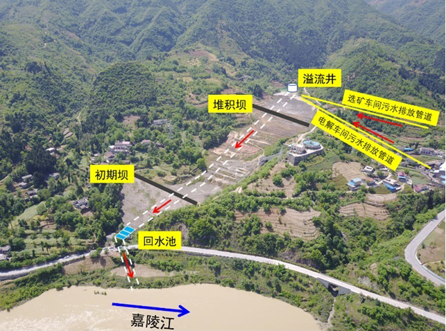 迅速斷源。兩地迅速聯合對嘉陵江沿線干流、支流河道開展污染源頭排查,通過采樣監測、科學分析等工作,鎖定陜西省漢中市寧強縣燕子砭鎮漢中鋅業銅礦有限責任公司為肇事企業。經現場查勘、監測分析及企業人員確認,選礦車間多膛爐煙灰堿洗除氟氯產生的廢水、電解車間洗銅廢水中含鉈廢水,在未經有效處置的情況下,由泵經專管排入尾礦庫。當尾礦庫存水超過溢流井溢流水位時,含鉈污水經溢流井-排洪隧洞排入回水池后進入100米外的嘉陵江干流。陜西省漢中市人民政府制定應急整治方案,組織有關部門和企業采取有效措施切斷污染源。